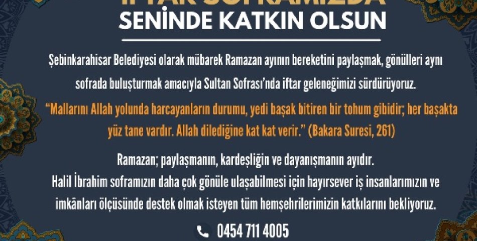 Şebinkarahisar Belediyesi’nden Ramazan’da Birlik Sofrası