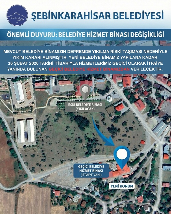 Şebinkarahisar Belediyesi Hizmet Birimleri Geçici Binaya Taşınıyor 13 Şubat 2026, 06:39