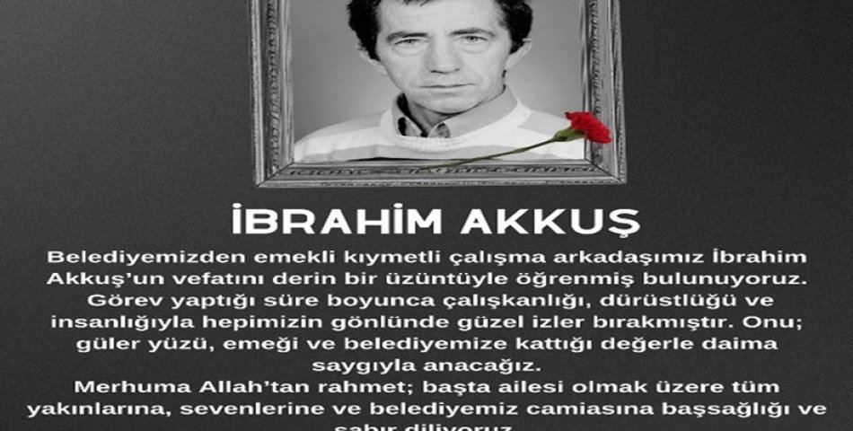 Emekli Çalışma Arkadaşımız İbrahim Akkuş’a Allah’tan Rahmet Diliyoruz
