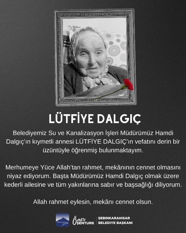 Belediyemiz Su ve Kanalizasyon İşleri Müdürümüz Hamdi Dalgıç’ın Kıymetli Annesi LÜTFİYE DALGIÇ Vefat Etti 15 Nisan 2026, 06:19